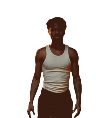 Roddy Ricch, wearing a white tank top, walks slowly towards the camera with a serious expression on a transparent background.