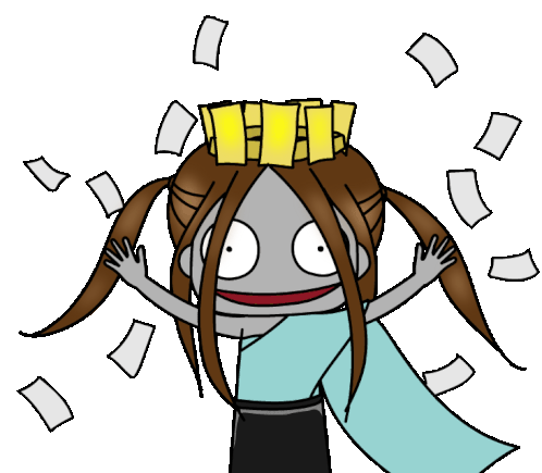 Animated character with a lottery ticket crown cries as paper falls, expressing the disappointment of losing the lottery.