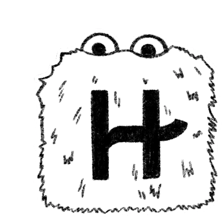 A fluffy Hinge monster with the letter 'H' bites itself, releasing a cascade of pink hearts, symbolizing love and affection.