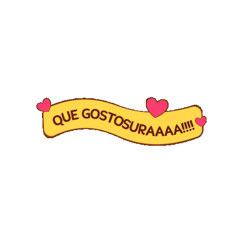 A vibrant yellow banner sticker with red hearts, featuring the Portuguese phrase 'Que Gostosura!' meaning 'What a Treat!'