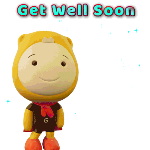 a cartoon character holding a red rose and the words get well soon