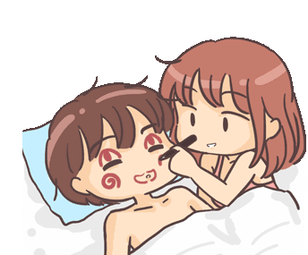 A lovely cartoon couple in bed, with the girl playfully drawing on the boy's face while he sleeps, creating a funny prank.
