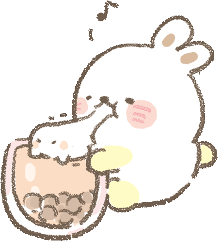 Cute Minihana character enjoying a refreshing bubble tea, looking lovely and relaxed with a good mood.