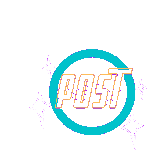 A vibrant animated sticker featuring the word 'POST' in glowing blue and teal, encircled by orange, with sparkling stars, by Luanaalcarde.