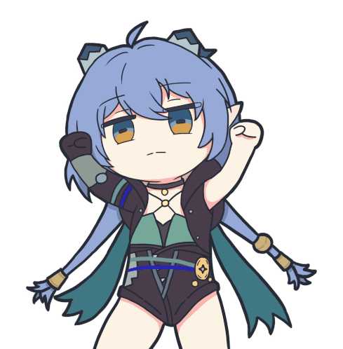 a cartoon drawing of a girl with blue hair giving a fist bump
