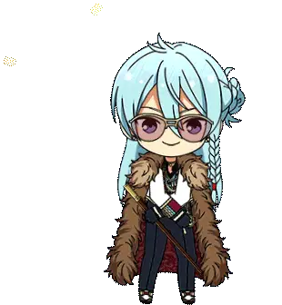 Wataru Hibiki from Ensemble Stars, a chibi character, greets with 'gm lucieltwt' in a vibrant animated sticker.