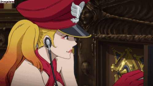 Fujiko Mine from Lupin III intently turning a golden dial to crack a safe, wearing her signature red cap.