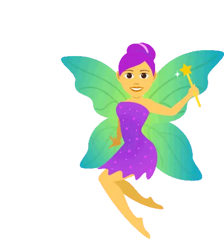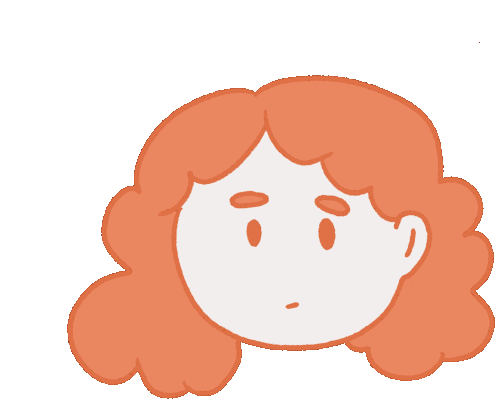 A cute cartoon character, Madmaktalena, with orange curly hair, winks and smiles. A charming goblin fairy.