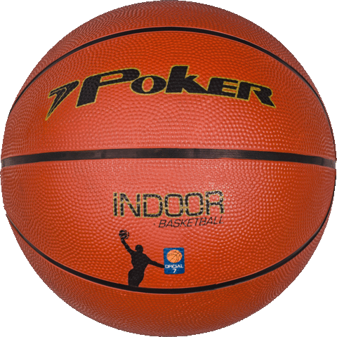 a poker indoor basketball with a basketball player on the side