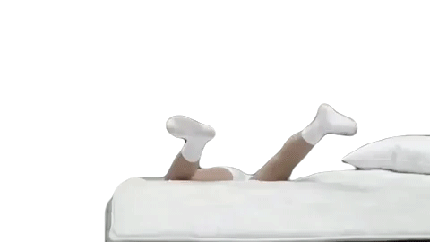 Kassi Ashton lies on a bed, playfully moving her legs in the air, with a focused expression, possibly singing or fooling around.