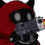 Lyto, the black cat character, points a pistol directly at the viewer while wearing a red hooded sweatshirt.