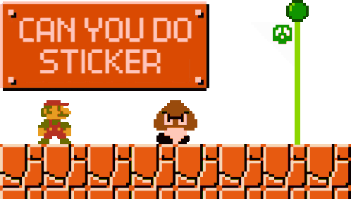An animated sticker by Rafi Mario featuring iconic characters Mario and Goomba, with the text 'can you do sticker'.