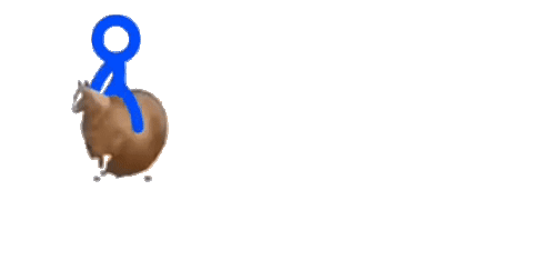 A blue stickman figure rides a brown, cartoonish horse in this animated sticker by Rafi, adding a playful touch.