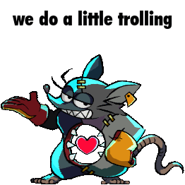 A cartoon rat from Mad Rat Dead with a heart in its mouth, displaying the text 'we do a little trolling'.