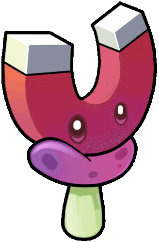 a cartoon drawing of a red horseshoe with a purple tongue sticking out of it