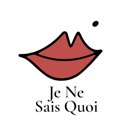 Stylized red lips with a black outline and a beauty mark, featuring the elegant French phrase 'Je Ne Sais Quoi' below.