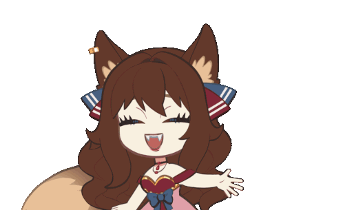 Maknch3esy, the adorable fox girl, laughs heartily and then waves hello with a cheerful expression.