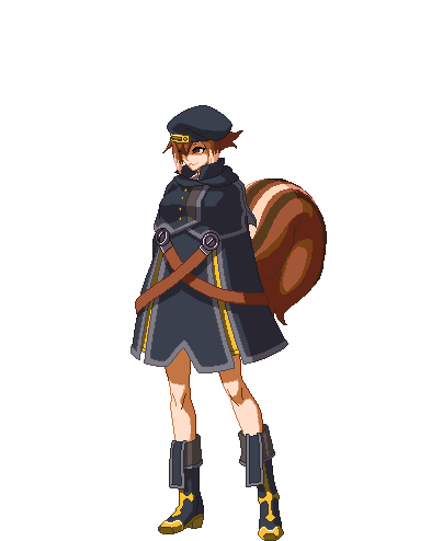 Makoto Nanaya from Blazblue transforms from her hooded coat to her signature orange and black outfit, ready for action.