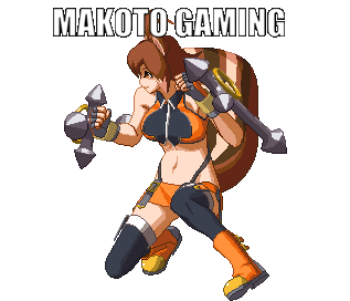An animated sticker featuring Makoto from Blazblue, a squirrel-like character, with "makoto gaming" text.