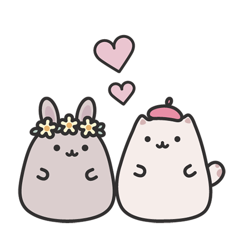 a drawing of a rabbit and a cat with hearts coming out of their heads