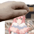 Mandy, the pink-haired anime girl from Cat Fantasy, is shown with closed eyes and a gentle, shy expression, hands clasped.