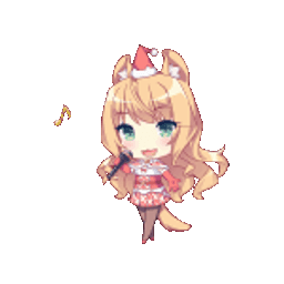 Maple from Nekopara, a cute anime girl with cat ears and a Santa hat, sings into a microphone with a musical note.