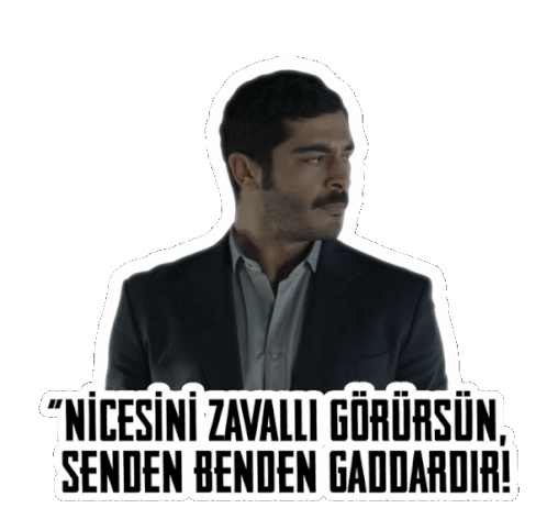 Maraşlı, the character from the Turkish series, looks on as a quote appears: 'You will see, he is wretched!'