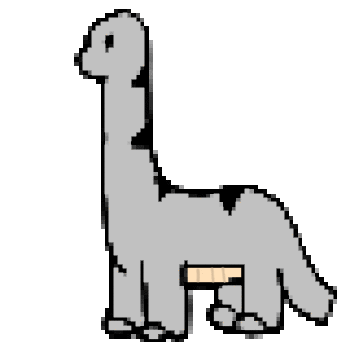 a pixel art drawing of a dinosaur with a bandage on it 's arm .