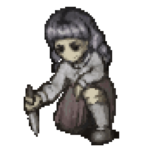 a pixel art drawing of a person holding a knife