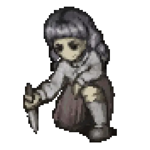 Animated sticker of Marina, the character from the indie RPG Fear & Hunger, featuring her distinctive black and white drawing style.