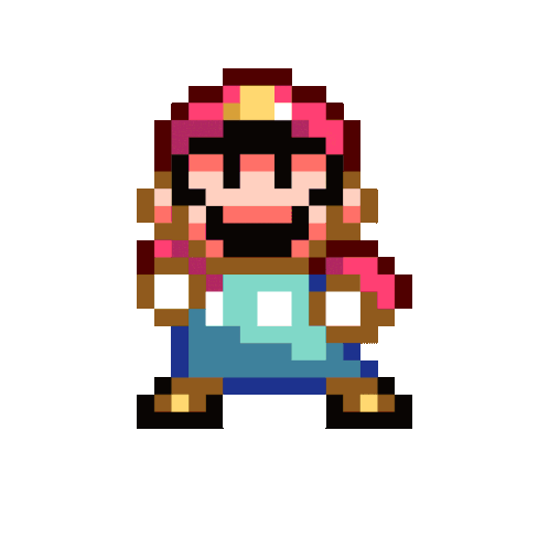 Pixelated Mario character performs a lively dance, bringing retro gaming vibes to your messages with his iconic moves.