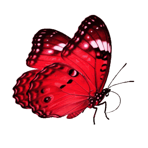 A vibrant red butterfly with intricate black spots on its wings, gracefully animated.