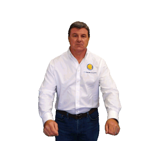 Mark Blundell, wearing a white shirt and jeans, checks his wrist and makes a gesture, possibly interacting with a smartwatch.