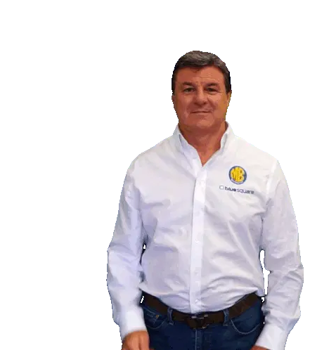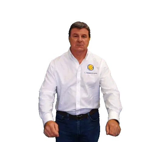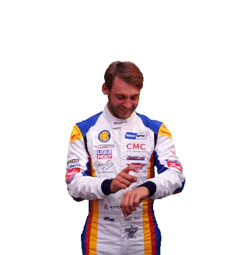 Mark Blundell, wearing a white shirt, checks his watch and points, conveying a sense of urgency or instruction.