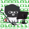 Marsey, a cartoon character in a black mask, hacks on a computer with a dynamic binary code background.