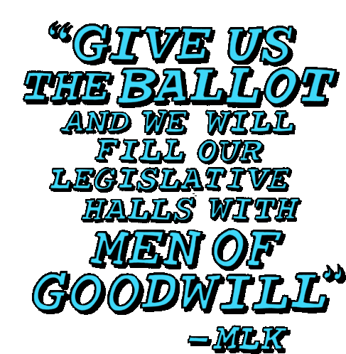 Powerful quote from Martin Luther King Jr. (MLK): 'Give us the ballot and we will fill our legislative halls with men of goodwill.' A call for voting rights and civil rights.