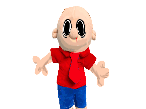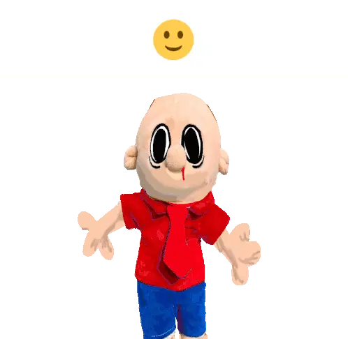 Marvin's Sun plush toy bobs up and down, wearing a red shirt, tie, and blue shorts, with a cheerful expression.