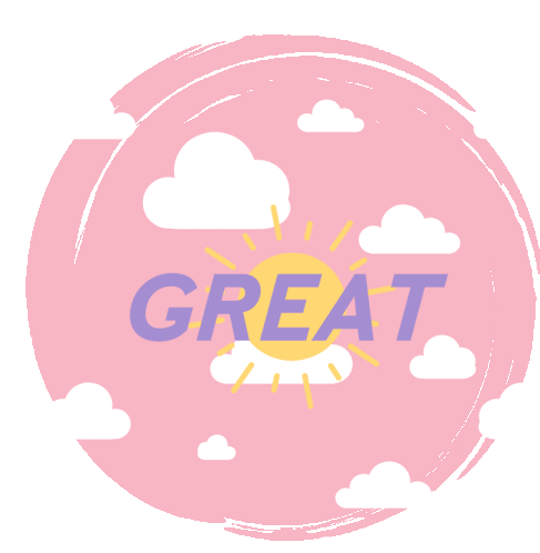 A vibrant Mary Kay Marykayph sticker featuring a pink circle, white clouds, a bright sun, and the word 'GREAT'.