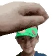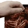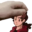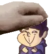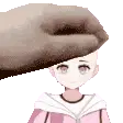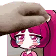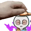 A close-up of a hand gently petting a Mascota Orshom, holding a paper with the letter 'r'.
