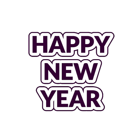 Animated sticker wishing 'Happy New Year' with bold purple text, perfect for festive celebrations and greetings.