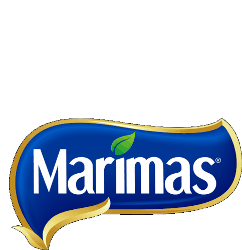 a man with a mustache is behind a blue marimas logo