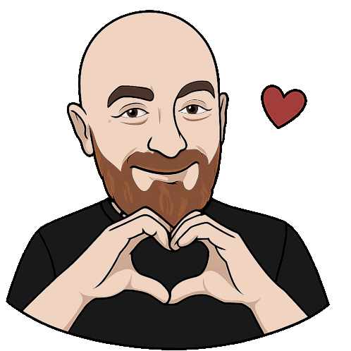 a man with a beard is making a heart with his hands