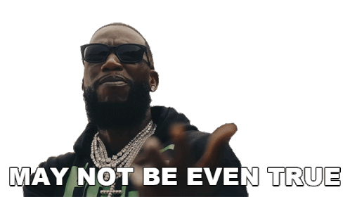 Gucci Mane points at the viewer with a skeptical expression, accompanied by the text 'May Not Be Even True'.