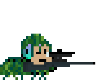 Mbb Monkey Baby Business pixel art sticker featuring a soldier in camouflage with a sniper rifle.