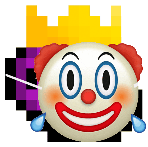 A digital sticker featuring the MBB clown emoji, crying with blue tears, wearing a pixelated yellow crown.