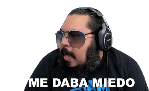 Agbin3r, a man with a beard, sunglasses, and headphones, looks surprised with the caption 'Me Daba Miedo'.