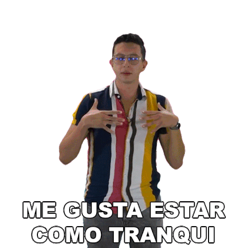Juan C Platz, wearing a striped shirt, gestures while saying "I like to be chill," expressing a relaxed and calm mood.