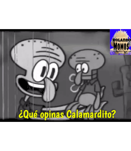 a black and white cartoon of squidward and squidward saying " que opinas calamardito "