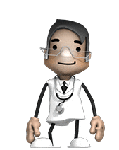 Dr Doxx, the Medatixx doctor character, shrugs with open hands and a friendly smile, conveying a 'sorry' or 'I don't know' gesture.