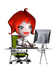 Medatixx Roxy, a cheerful animated character, sits at a desk and types on a computer with a big smile.